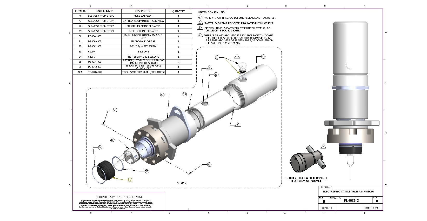 BOM of a Patented "Tattle Tale" used in the Oil & Gas Drilling Industry. Invented by Ken