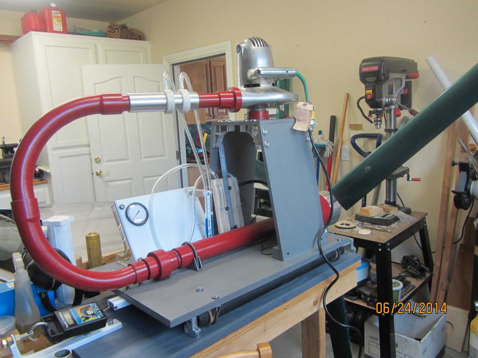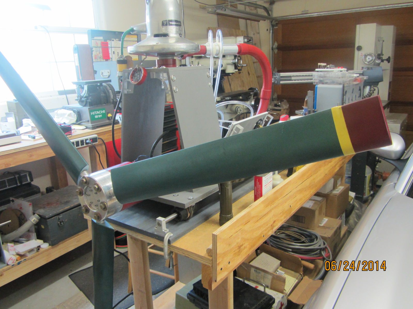 If you look closely you can see the nozzles at the blade tips. My tests were done using a large trailer mounted industrial compressor. While the pressure required was only about 13 psi, the volume was up around 250 to 300 cfm.